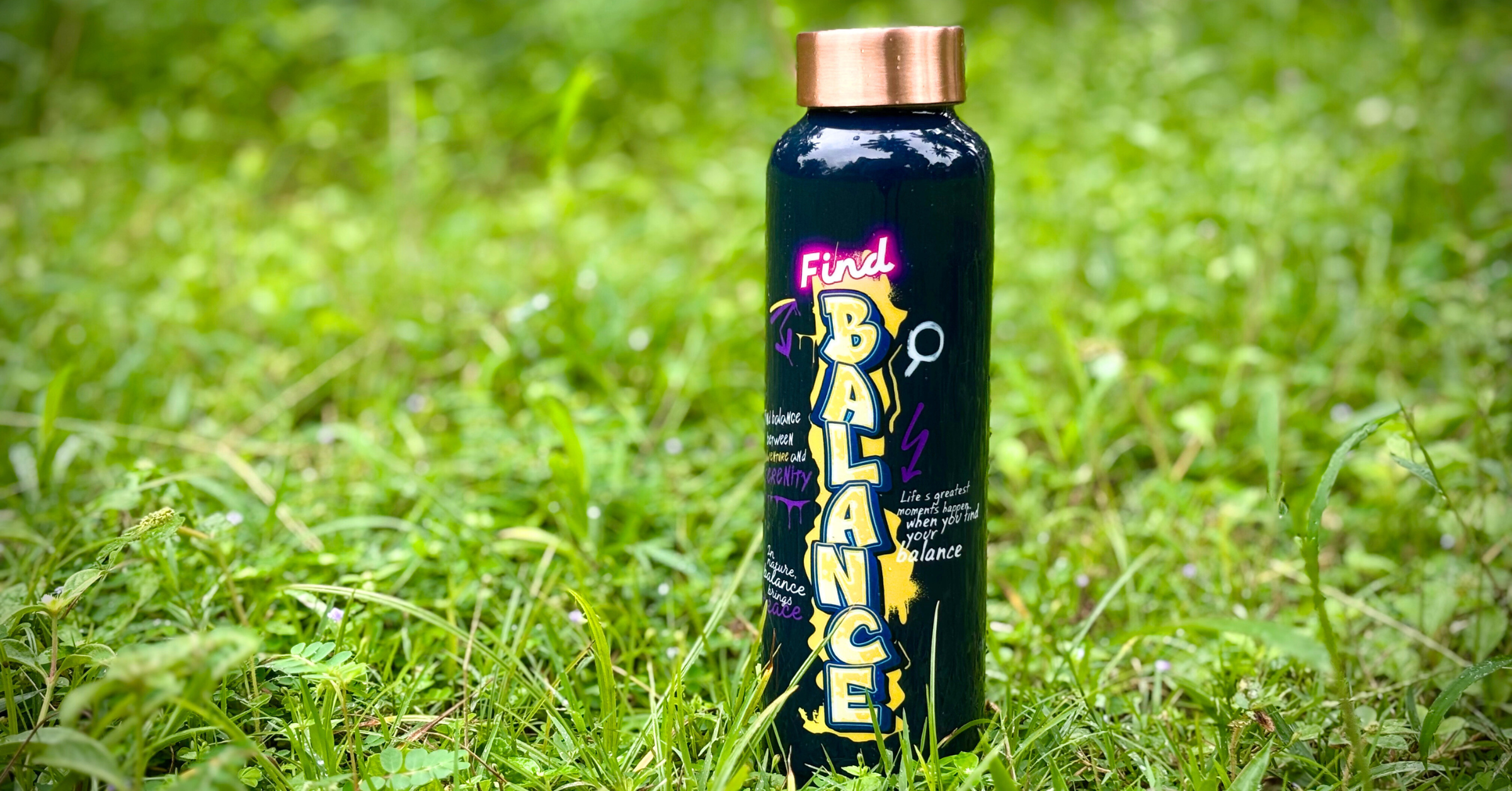 (Limited Time Offer) Plazy Water Bottle | Copper | Find Balance | Colour: Navy Blue | 900ml