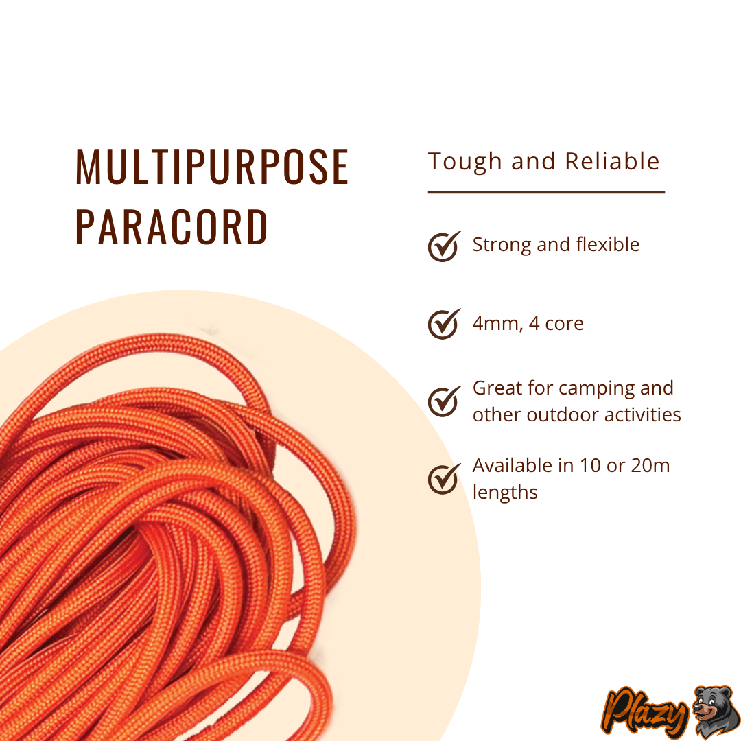 Paracord Rope – 4 Inner Strands | Heavy-Duty Utility Cord | 10m & 20m Lengths | Color – Orange